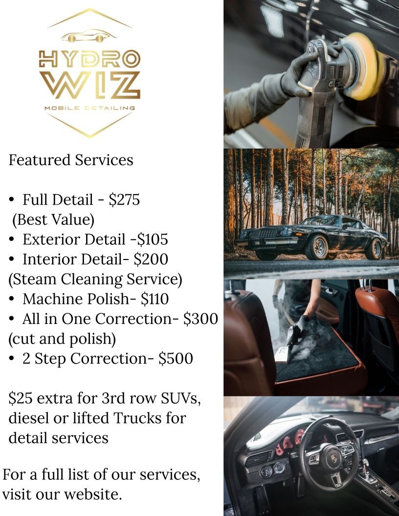 Hydro Wiz llc provides quality auto detailing, reconditioning and protection for your vehicle. Daily use or garage kept vehicles can be time consuming and challenging to maintain, Hydro Wiz llc can help with keeping your vehicle looking great. Call or text (817) 937-9831 to book your appointment today.